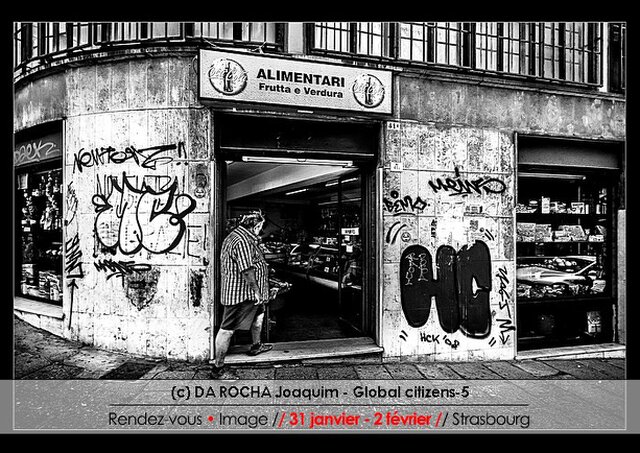 Cette série représente des personnes de tous les âges et de différents pays dans leur quotidien. Le décor urbain dans lequel ces citoyens du monde s’inscrivent est tout aussi important que les personnages eux-mêmes et leur action. Je cadre de façon à saisir le rapport entre ces citoyens et leur environnement urbain. Cette série évoque les contrastes culturels à travers ces scènes de vie du quotidien. Un exemple de contraste qui me fait sourire : quand je vois des napolitains périlleux sans casque sur leur scooter circulant dans des ruelles étroites comparés, à l’autre bout du monde, avec les citoyens de Sydney attendant le voyant vert pour traverser de larges avenues. Ces photographies sont prises en noir et blanc [l’amour du N&B est en partie dû aux photographes qui m’inspirent qui y ont tous recours, HCB / Sergio LARRAIN / Sebastião SALGADO]. La série est un témoignage pour un partage et une invitation au voyage.