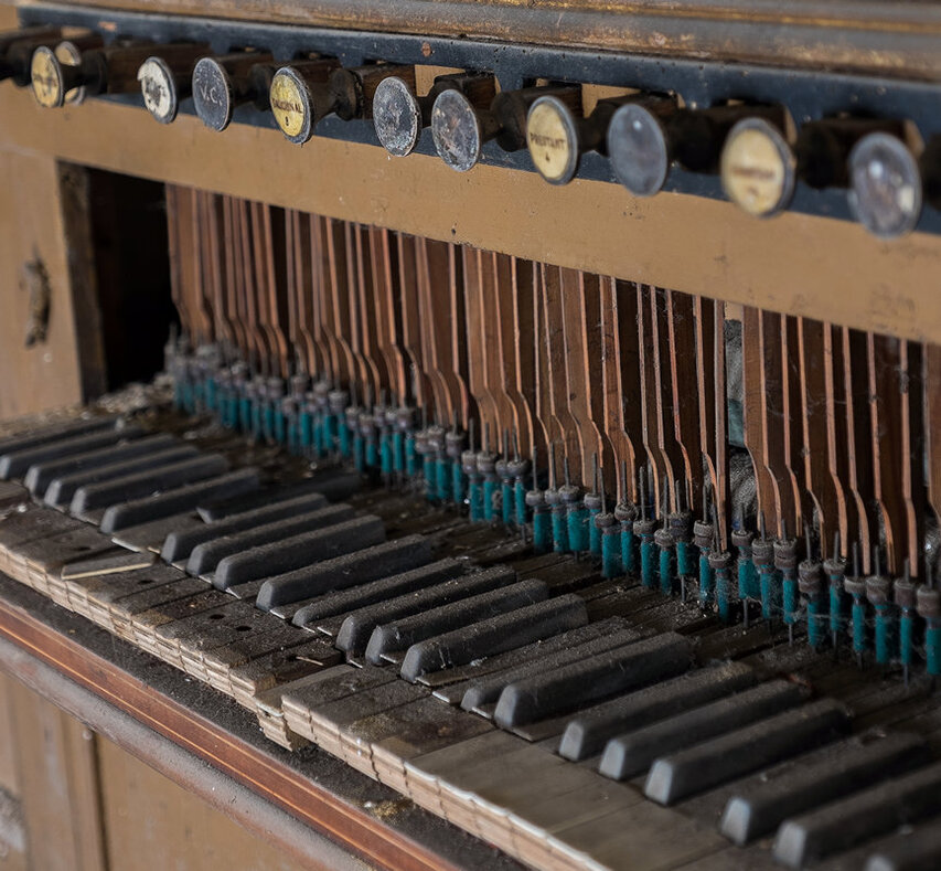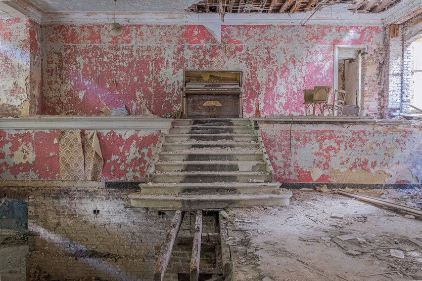 Belgique 2013. Voilà maintenant quatre ans que j'ai commencé à m'intéresser à la photographie de lieux abandonnés. Cette pratique qui a tendance à se populariser depuis quelques années, en bien ou en mal, se nomme Exploration Urbaine. C'est rapidement devenu une véritable passion. Elle m'a poussé à améliorer mes compétences photographiques et m'a permis de visiter de nombreuses friches en Europe. Qu'il s'agisse de châteaux, de maisons, de manoirs, d'usines, d'hôpitaux, ces lieux livrent une ambiance entre vie et mort, où le temps semble s'être arrêté et les traces d'un passé animé est rattrapé par son éphémérité. Il n'est pas rare d'y trouver de superbes vestiges comme les différents instruments de musique que je vous présente dans cette série et qui revivent momentanément à travers notre appareil photo.